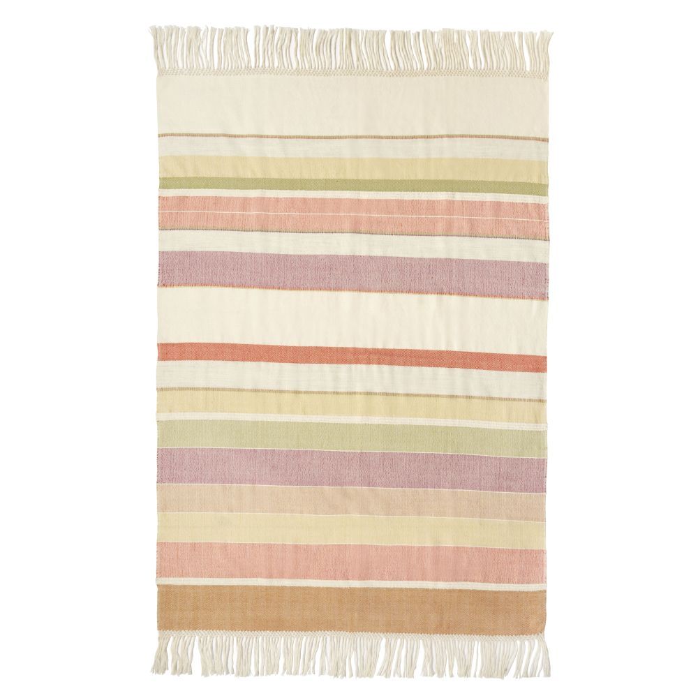 wollweiß mit bunten Streifen