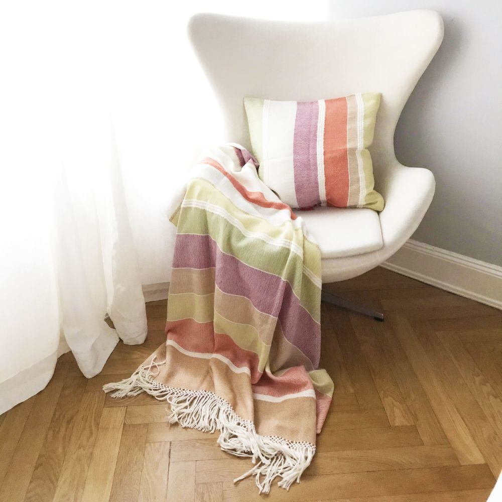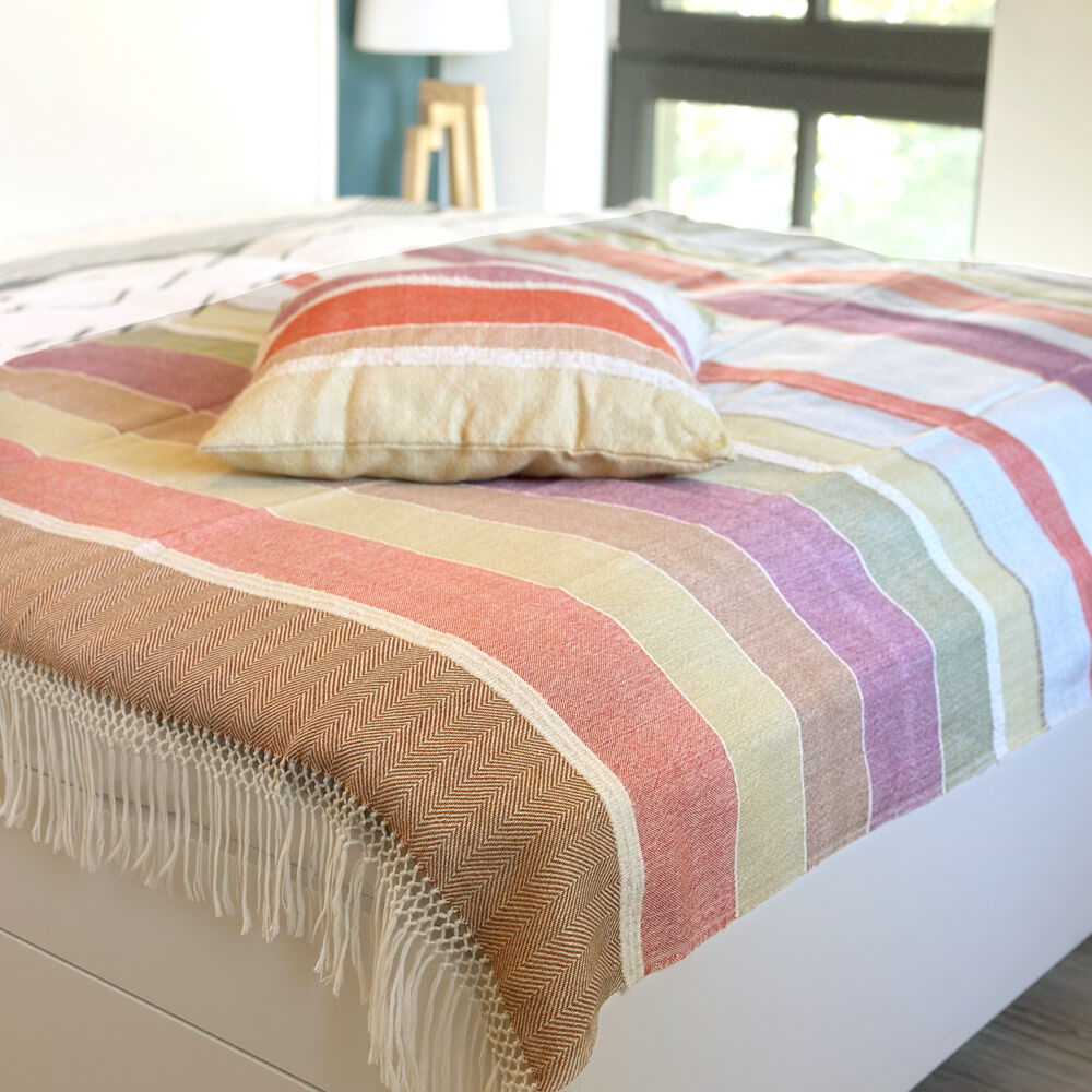 Kleine Auszeit gefällig? Unter diesem hochwertigen Plaid kann man herrlich relaxen. Die fröhliche Farbgestaltung sorgt auch gleich für eine positive Atmosphäre.