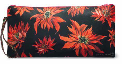 Clutch mit Reißverschluss und dekorativer Hangelenkschlaufe aus Perlen gewebt. Das extravagante Kunstmotiv stammt von Trechtikoff