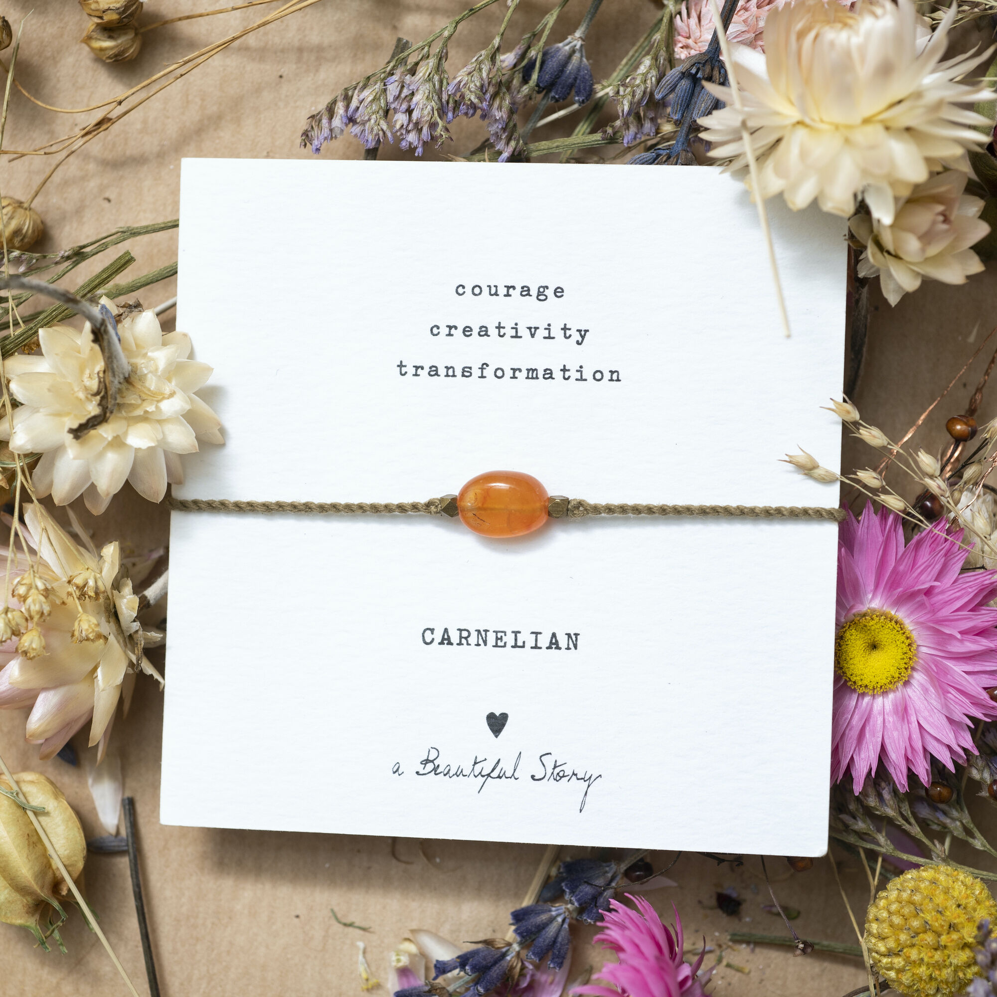 Karneol Edelstein, goldfarbenes Armband aus Baumwolle, Papier