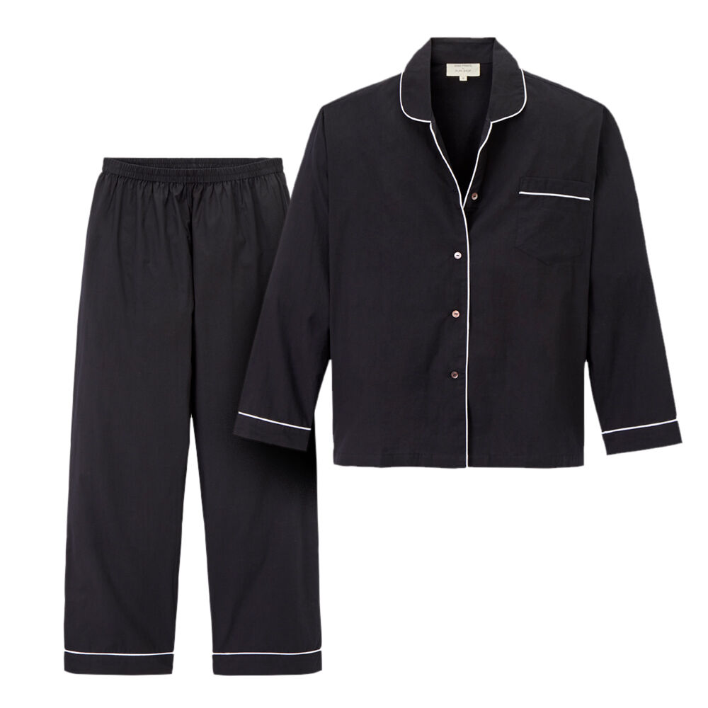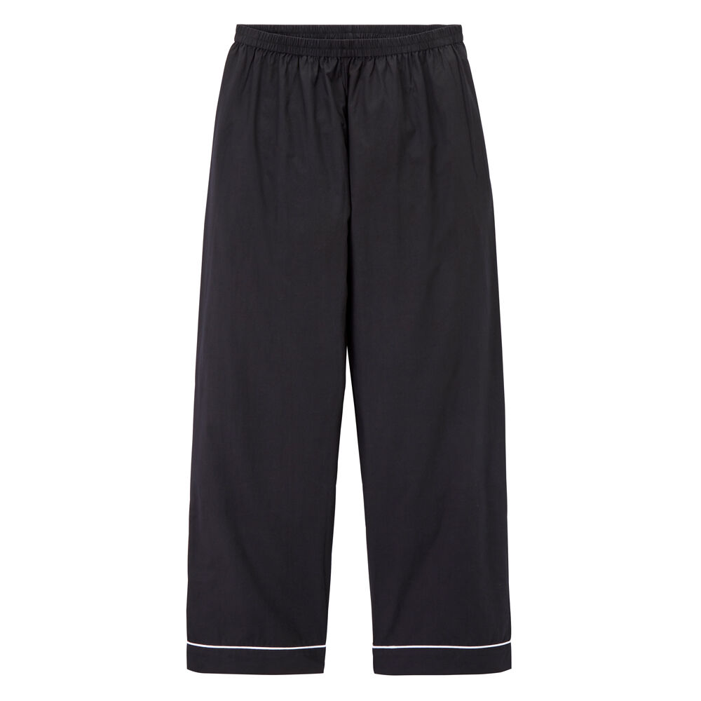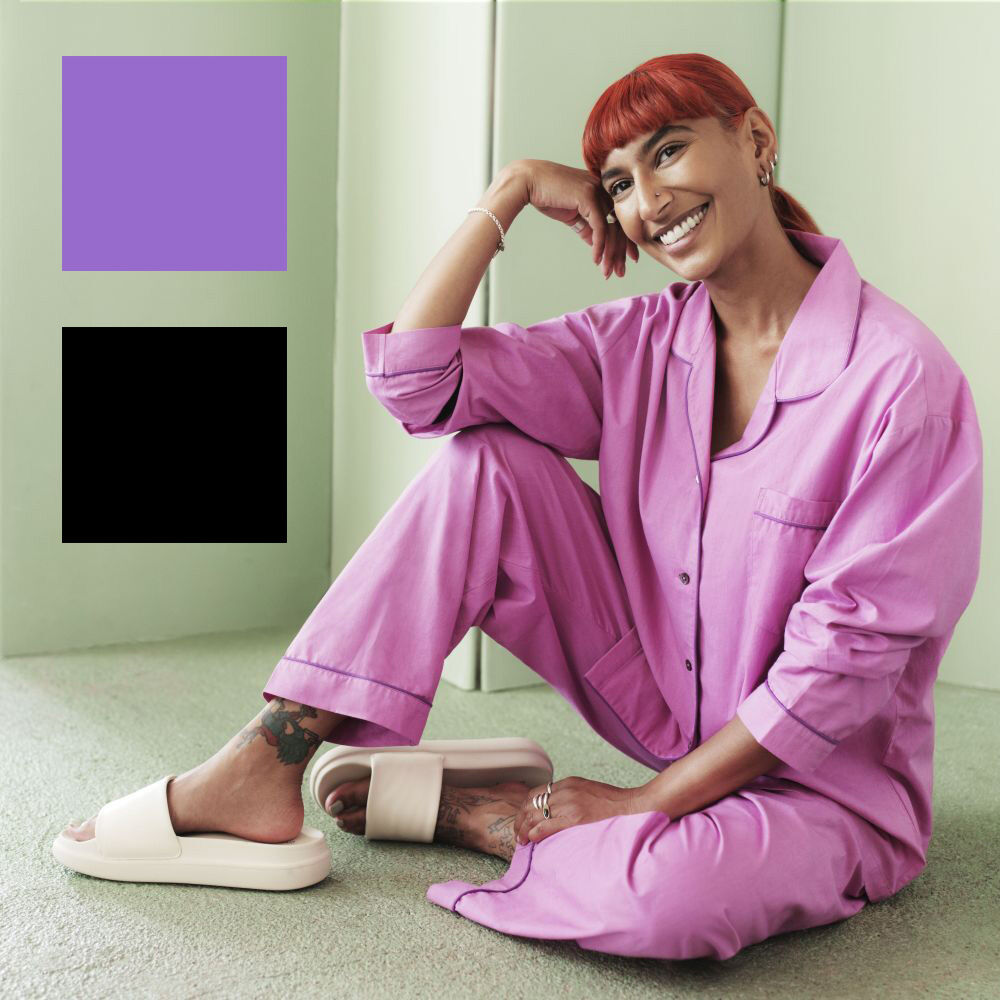 Unser Modell im schwarzen Pyjama zeigt an drei starken Looks, dass man ihn nicht nur zum Schlafen tragen kann: gemütlich - als Lounge Wear, elegant gestylt als Abend Outfit oder Hose und Oberteil einzeln kombiniert mit Streewear Bekleidung.