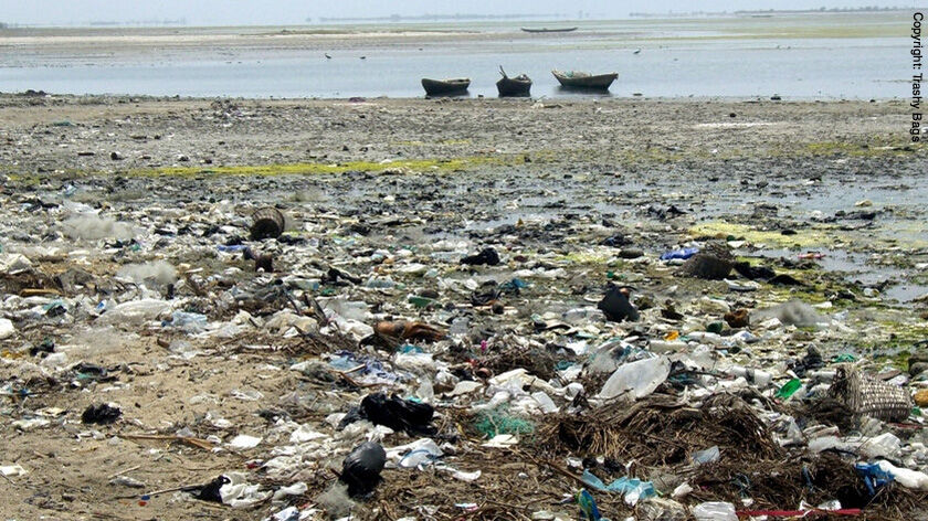 Die Antwort bekommt man, wenn man sich die Tasche genauer anschaut. Das ungewöhnliche Design entsteht, weil Trashy Bags aus einem Patchwork aufgearbeiteter Trinkwasserbeutel produziert werden. Diese Trinkwasserbeutel sind für Millionen Menschen in Afrika der einzige Zugang zu sauberem und relativ günstigem Trinkwasser. Das Problem: Die leeren Beutel werden massenweise weggeworfen, verschandeln die Landschaft, verstopfen Abwasserkanäle und sind eine Gefahr für Tiere. Allein in Ghana, dem Sitz von Trashy Bags, werden täglich 250 Tonnen Plastikmüll produziert.